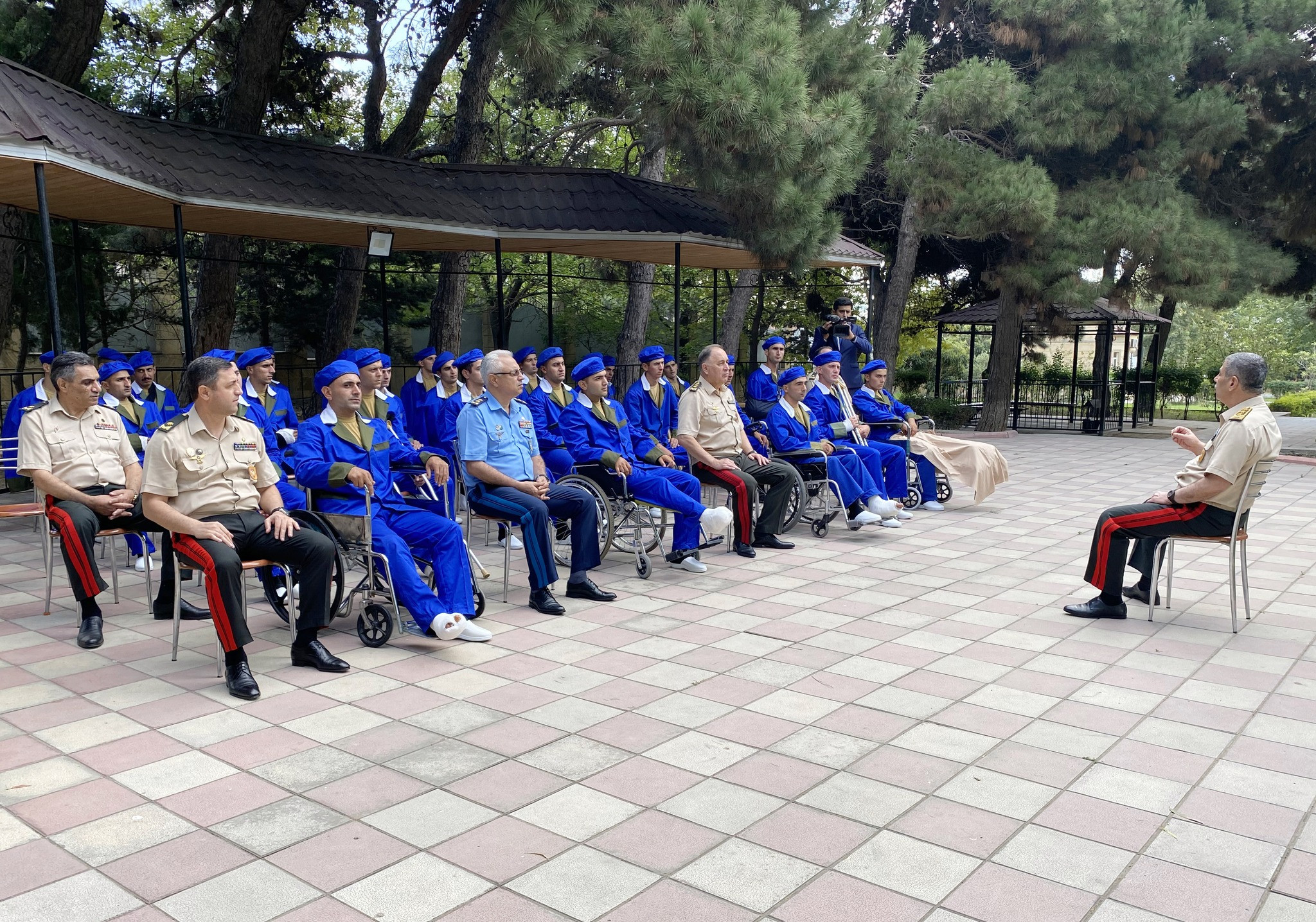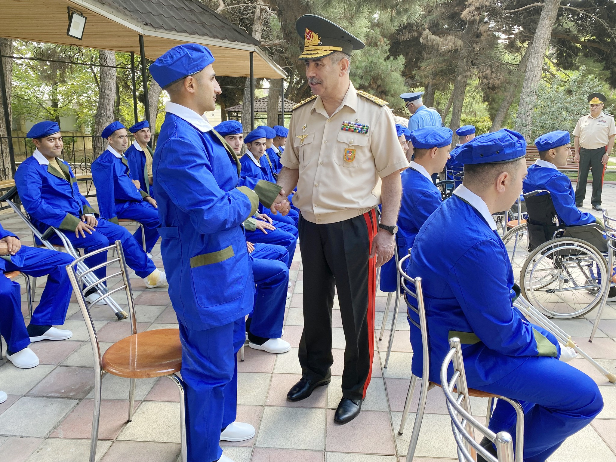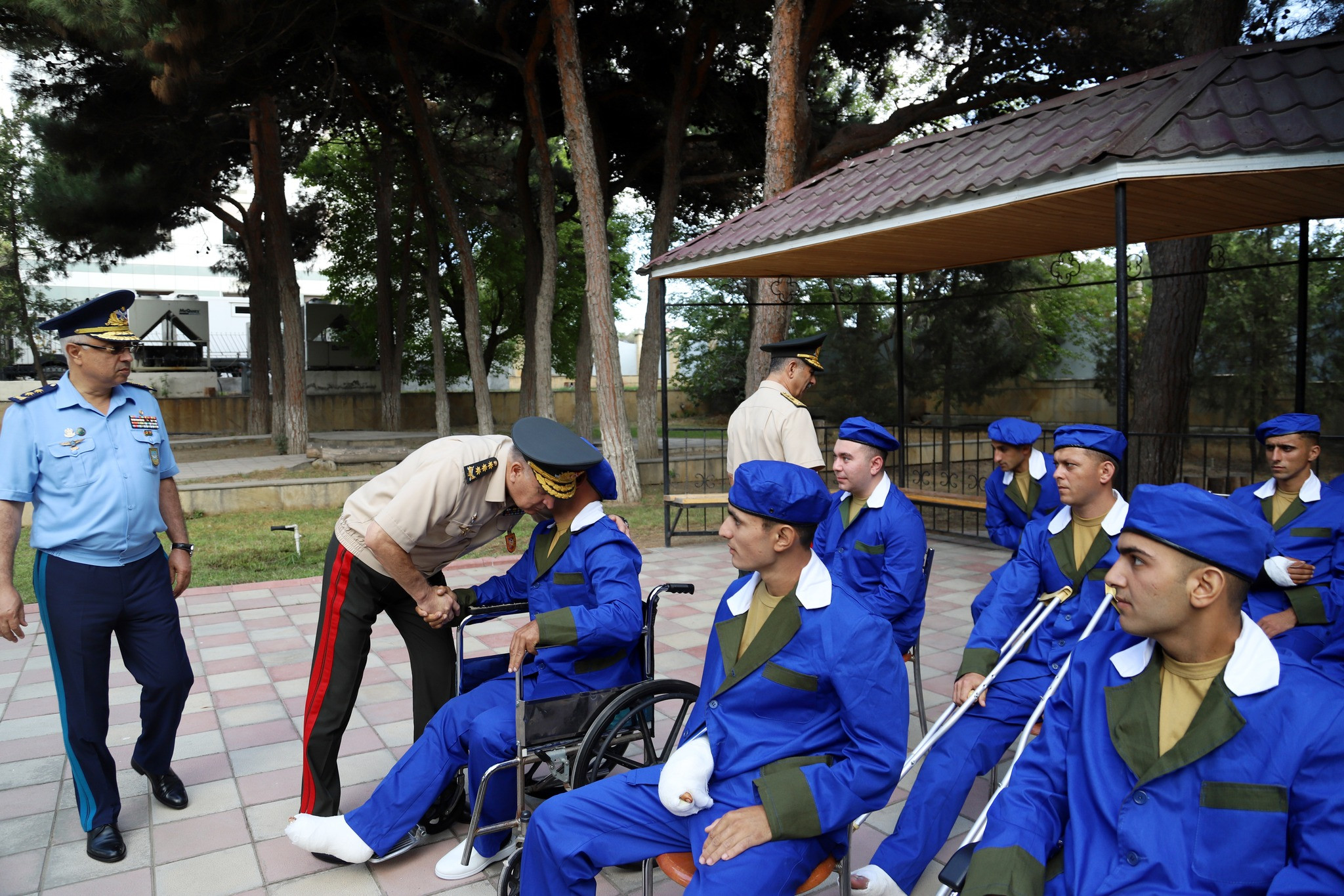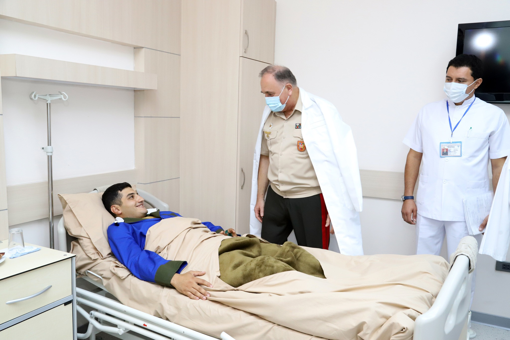 Colonel General Zakir Hasanov met with servicemen, who were wounded during the suppression of large-scale provocation of the Armenian armed forces and are being treated in the Main Clinical Hospital of the Ministry of Defense, and enquired about their health and concerns.