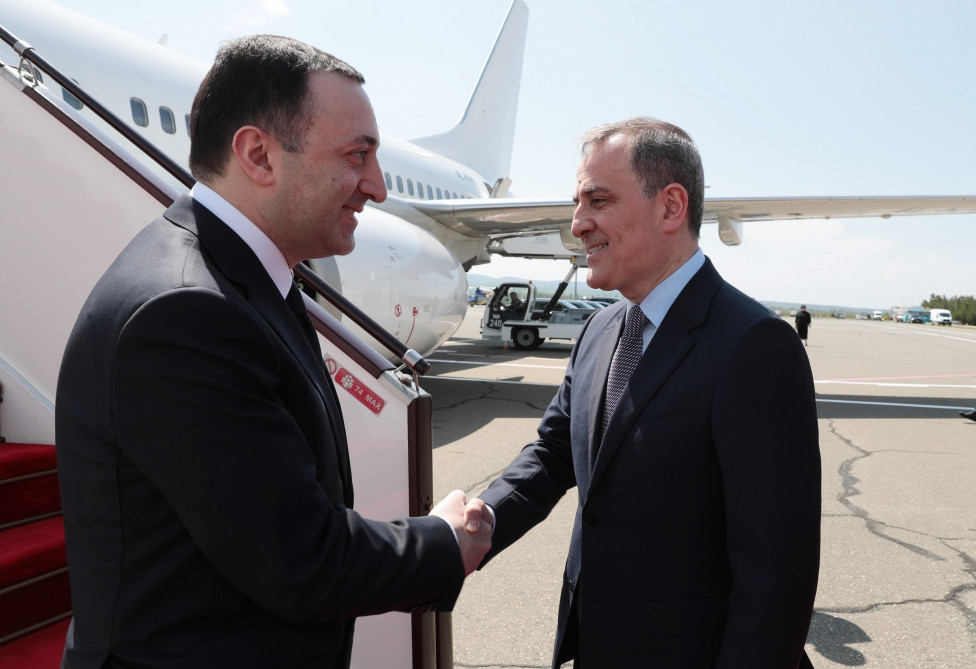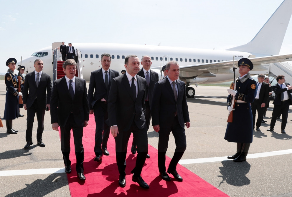 Georgian PM Irakli Garibashvili was met by Azerbaijan`s Foreign Minister Jeyhun Bayramov and other officials.