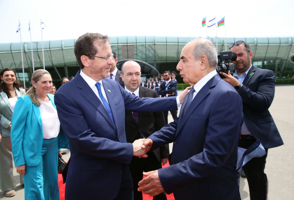 Israeli President Isaac Herzog and First Lady Michal Herzog were seen off by Azerbaijan`s First Deputy Prime Minister Yagub Eyyubov, Deputy Foreign Minister Fariz Rzayev and other officials.