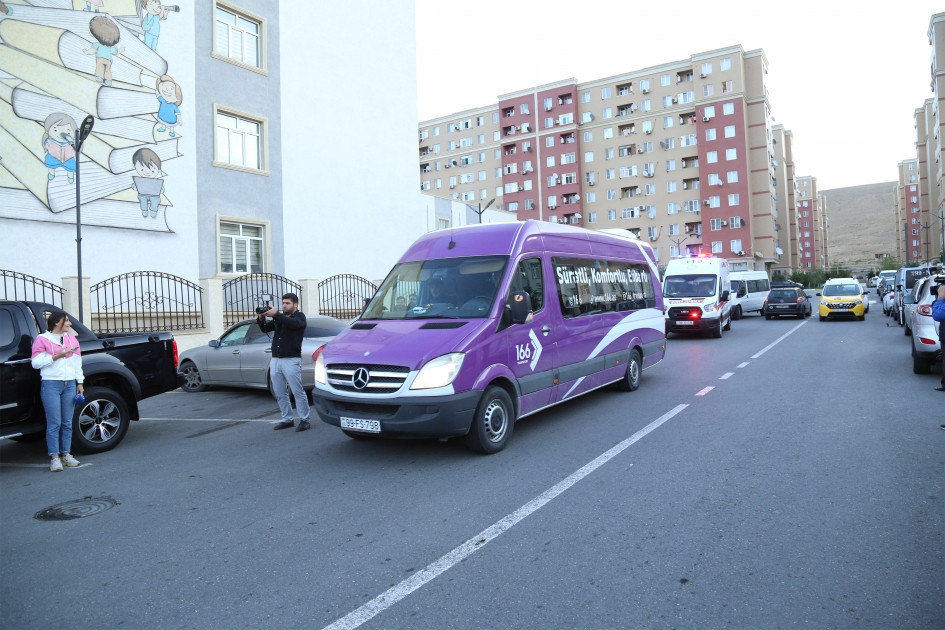 A motorcade with Lachin residents left the Gobu Park 3 residential complex in the Garadagh district of Baku.