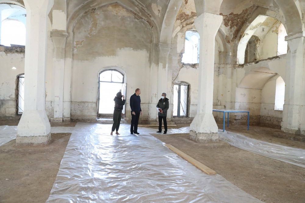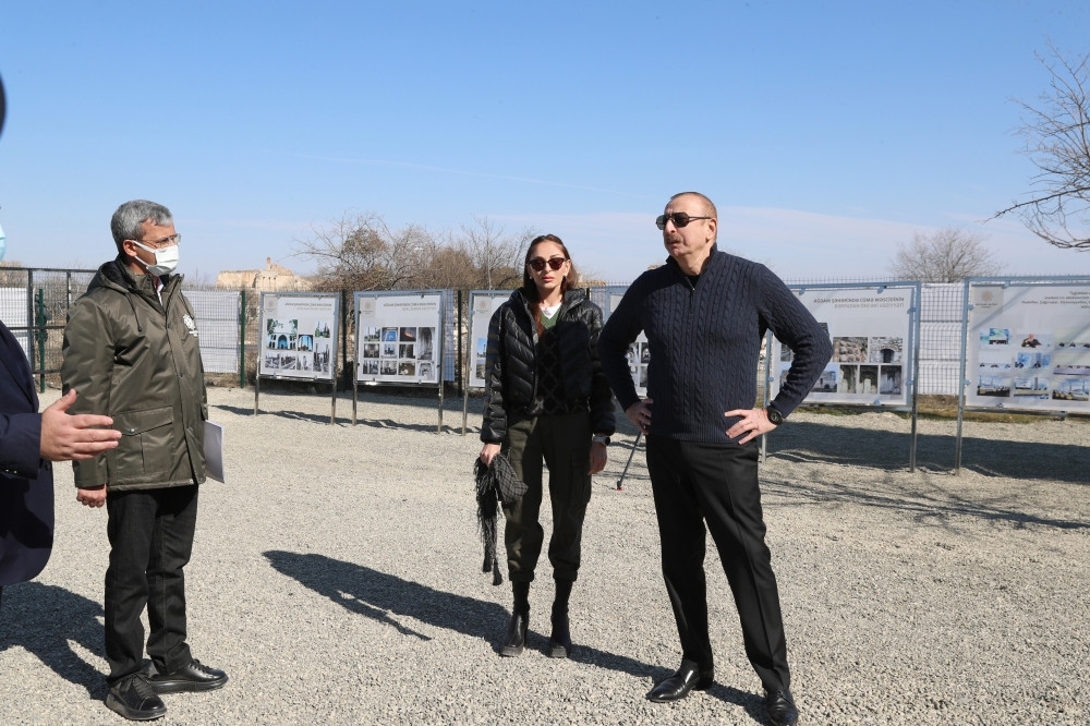 13 февраля Президент Азербайджанской Республики Ильхам Алиев и первая леди Мехрибан Алиева ознакомились с ходом восстановительно-реставрационных работ в Агдамской Джума-мечети, проводимых Фондом Гейдара Алиева.
