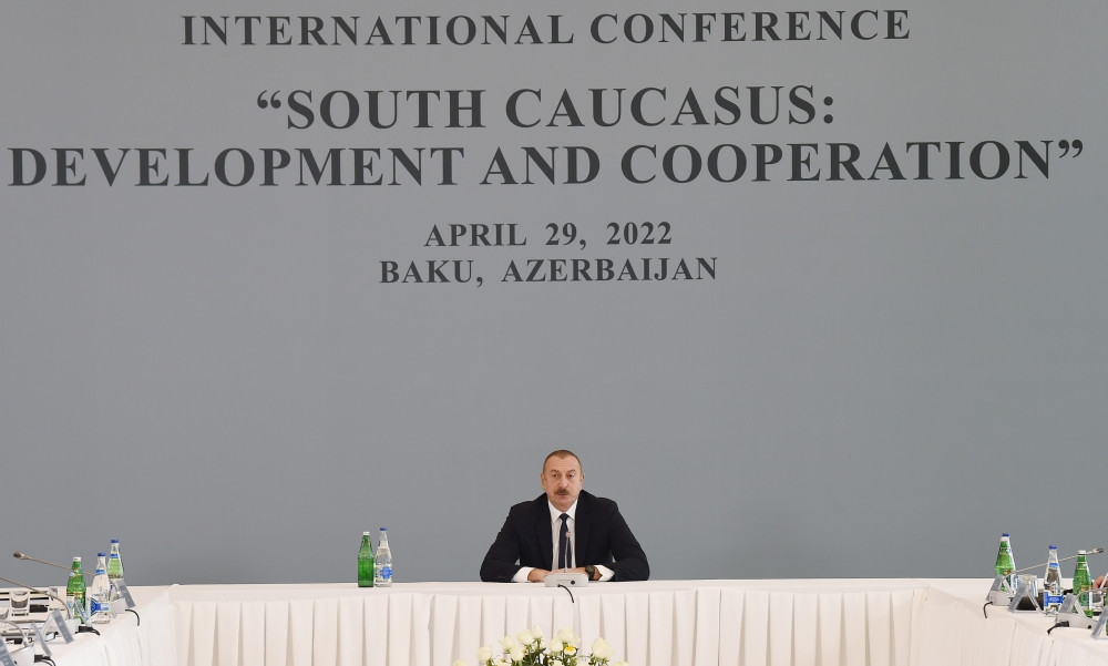 Отметим, что идея международной конференции на тему «Южный Кавказ: развитие и сотрудничество», начавшей работу 28 апреля в Шуше и продолжающейся сегодня в Баку, возникла на международной конференции на тему «Новый взгляд на Южный Кавказ: постконфликтное развитие и сотрудничество» (https://president.az/az/articles/view/51088), проведенной в Университете АДА 13 апреля прошлого года с участием Президента Ильхама Алиева. На той конференции участники предложили провести международную конференцию в Карабахе, и Президент Ильхам Алиев положительно оценил это предложение.
