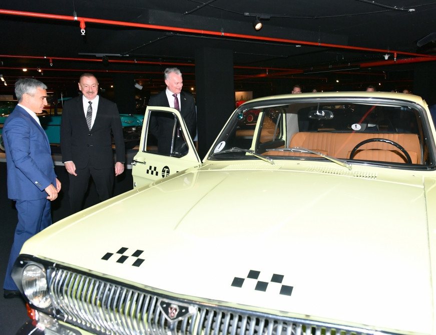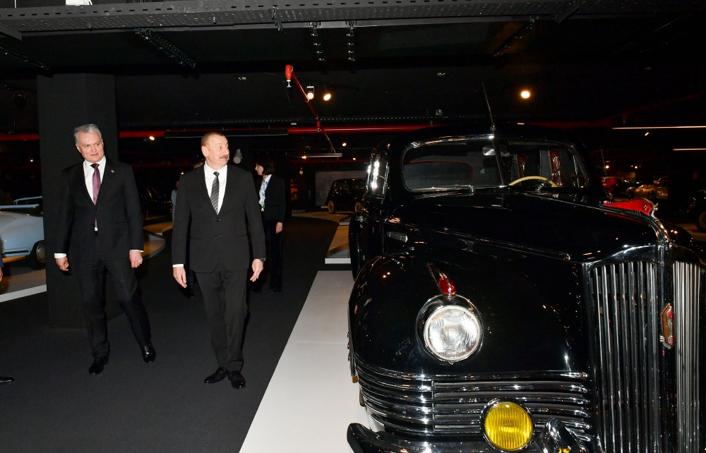 После церемонии подписания азербайджано-литовских документов главы государств ознакомились в Центре Гейдара Алиева с выставкой классических автомобилей.