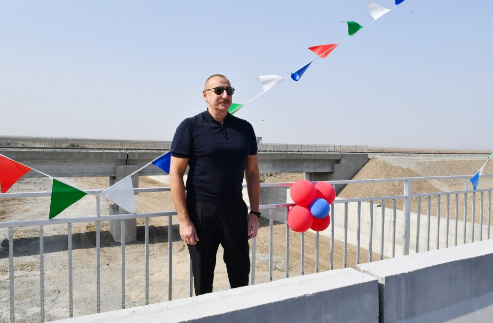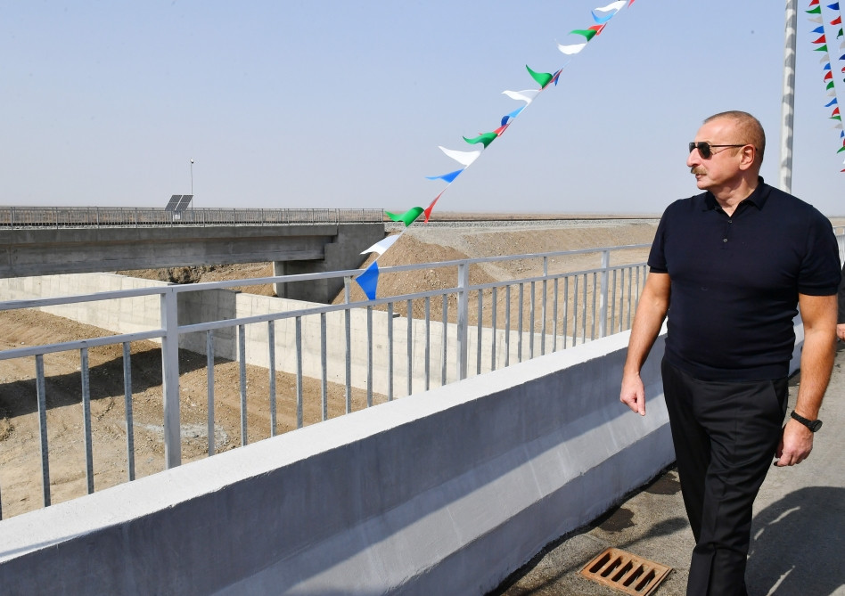 Председатель Правления Государственного агентства автомобильных дорог Азербайджана Салех Мамедов проинформировал главу государства о технических показателях дороги и проделанных работах. Было отмечено, что протяженность этой автодороги, берущей начало в городе Барда, составляет 44,5 километра, а ширина – 26,5 метра. Автомобильная дорога, строящаяся в соответствии с первой технической категорией, с учетом плана развития Карабаха состоит из четырех полос движения. Подчеркнуто, что вдоль дороги планируется возвести 4 моста, в том числе 3 надземных пешеходных перехода. Кроме того, на автодороге строятся 29 автобусных остановок, строительство 14 из них завершено. Отмечено, что земляные работы по проекту завершились, исполнено 75 процентов общего объема работ.
