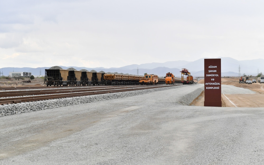 Было сообщено, что работы по проектированию железнодорожной линии выполнены на 90 процентов, заложен фундамент Агдамского вокзала. Также в направлении Барды и Агдама планируется спроектировать 3 платформы, дополнительную дорогу к этим платформам и две развязки. На 32,8-километровом участке железнодорожной линии уже уложены рельсы. Кроме того, в рамках первого этапа полностью завершены земляные работы, строительство инженерных сооружений, монтаж элементов верхних строений пути и стрелочных переводов. В настоящее время продолжается установка элементов верхних строений на участке между 45-м и 47-м километрами и земляные работы 6-й дороги станции Агдам.