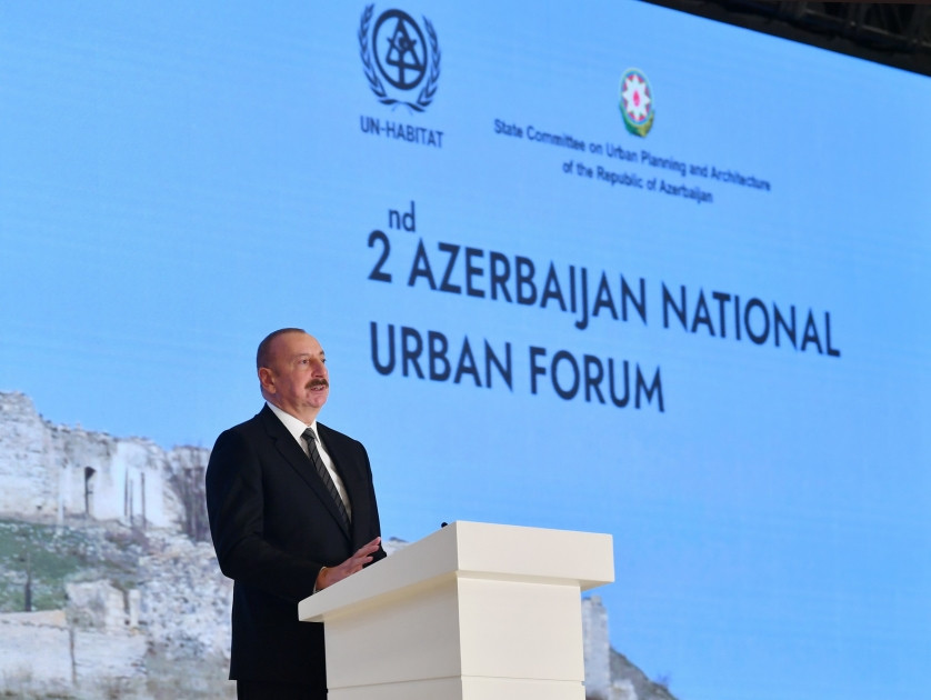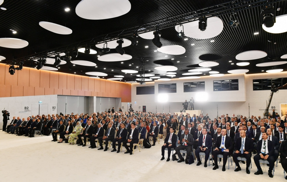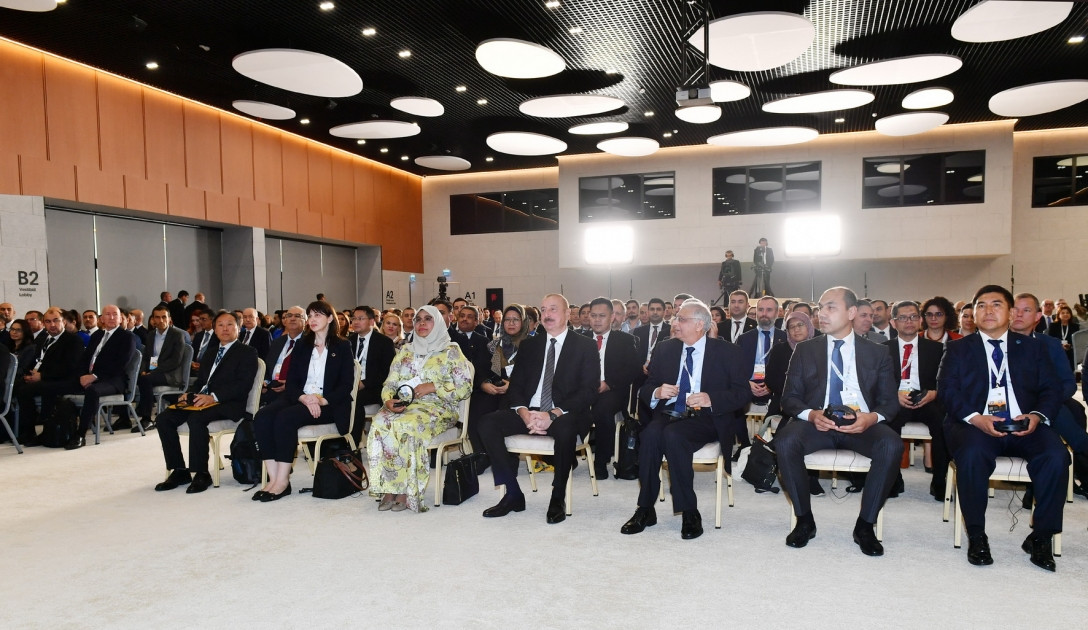 Hа мероприятии выступает Президент Азербайджанской Республики Ильхам Алиев.