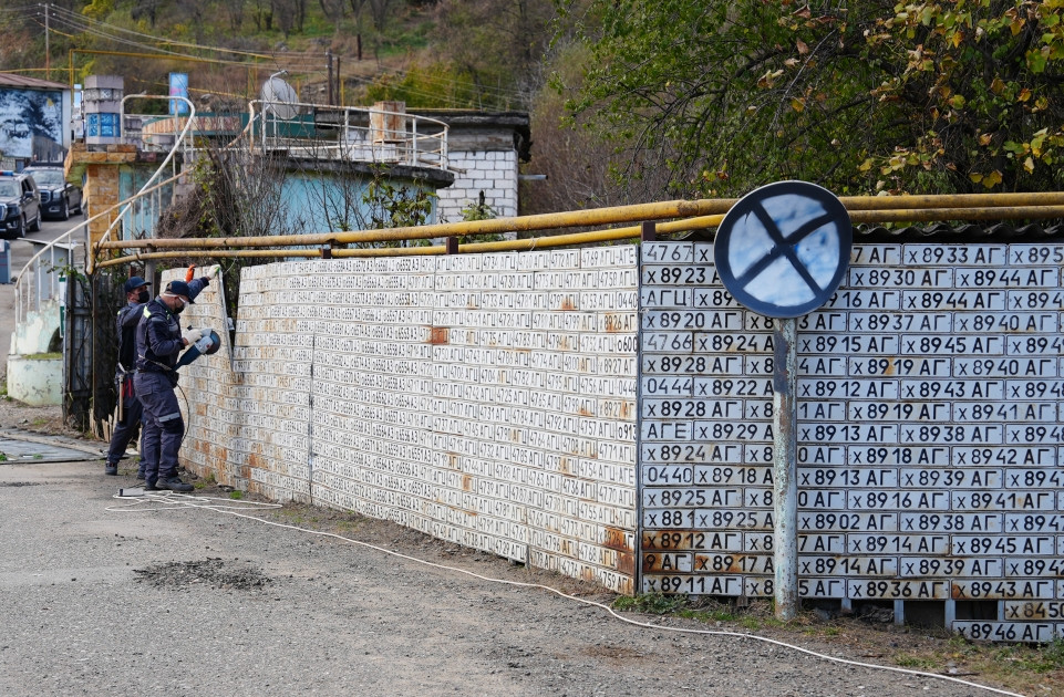 Отметим, что армяне совершили в период оккупации очередной акт вандализма, изготовив щит из номеров личных автомобилей азербайджанцев.