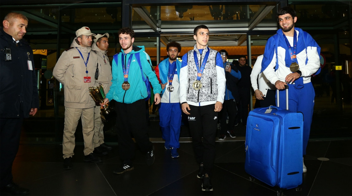 Члены сборной Азербайджана, успешно выступившие на молодежном чемпионате Европы в черногорской Будве, вернулись на родину.