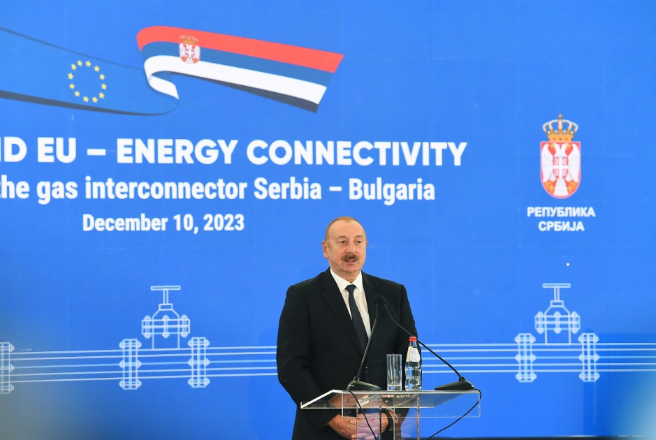 Президенты Ильхам Алиев, Александар Вучич, Румен Радев и руководитель постоянного представительства ЕС Эммануэль Жофре ввели в действие газовый интерконнектор Сербия-Болгария.
