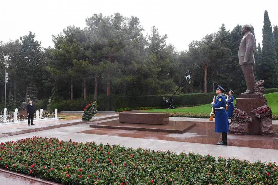 Президент Ильхам Алиев возложил венок к могиле великого лидера.