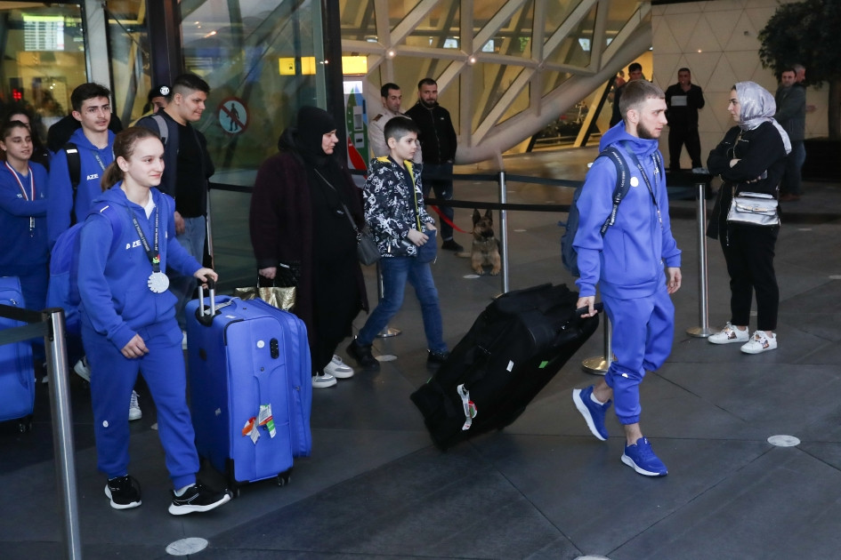 Членов сборной встречали представители Федерации гимнастики Азербайджана, журналисты, болельщики, родственники спортсменов, а также рядовые граждане.