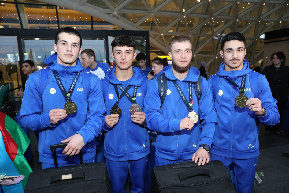 Члены сборной Азербайджана, успешно выступившие на чемпионате Европы по прыжкам на батуте, двойном мини-батуте и акробатической дорожке в португальском Гимарайнше, вернулись на родину.