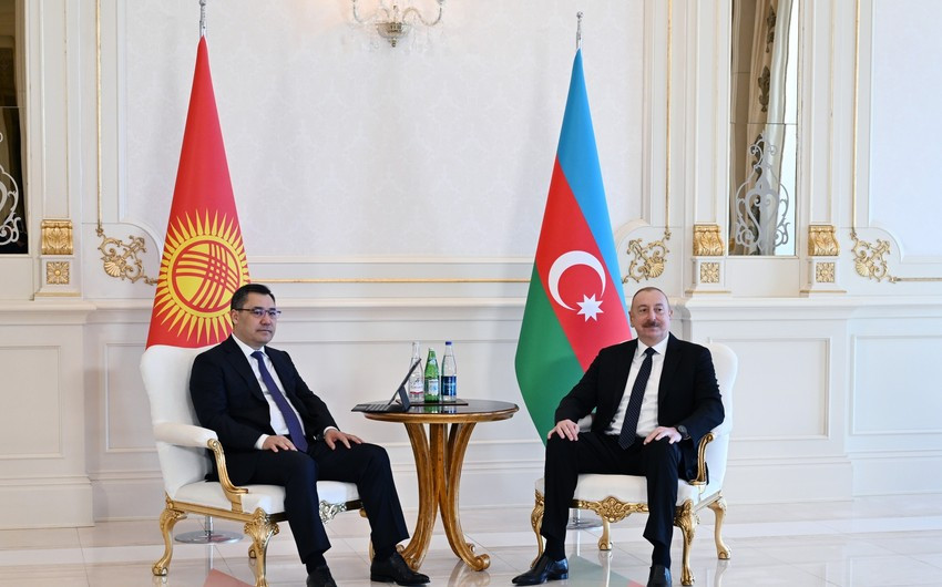 24 апреля началась встреча Президента Азербайджанской Республики Ильхама Алиева и Президента Кыргызской Республики Садыра Жапарова в узком составе.