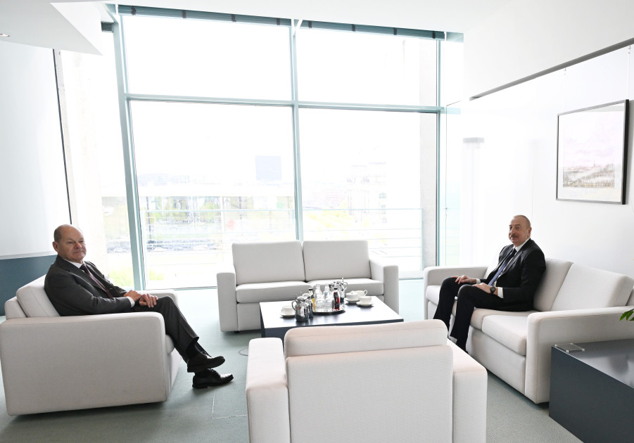 26 апреля в Берлине началась встреча Президента Азербайджанской Республики Ильхама Алиева и Канцлера Федеративной Республики Германия Олафа Шольца один на один.