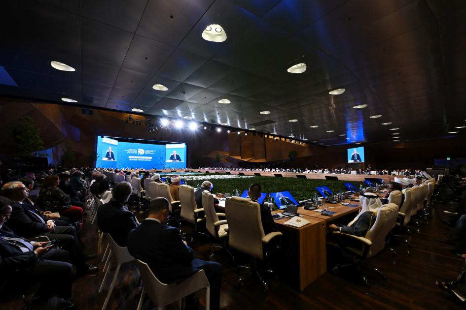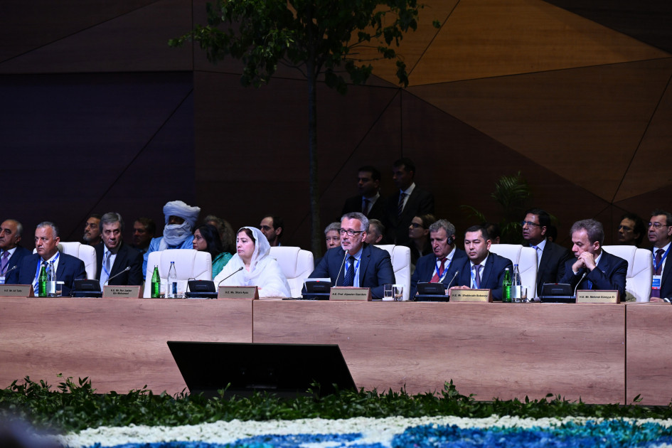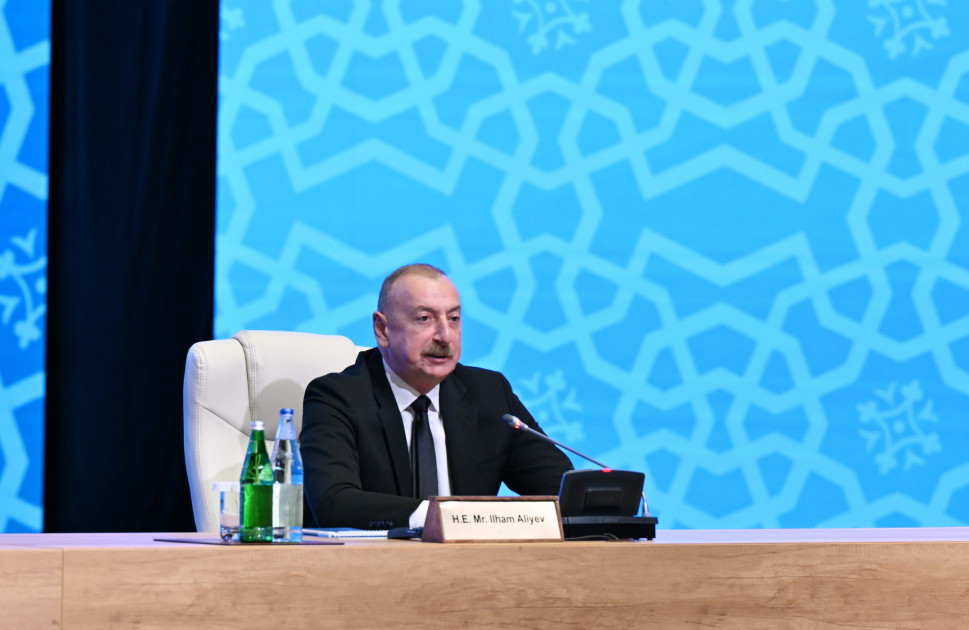 B мероприятии принимает участие Президент Азербайджана Ильхам Алиев.