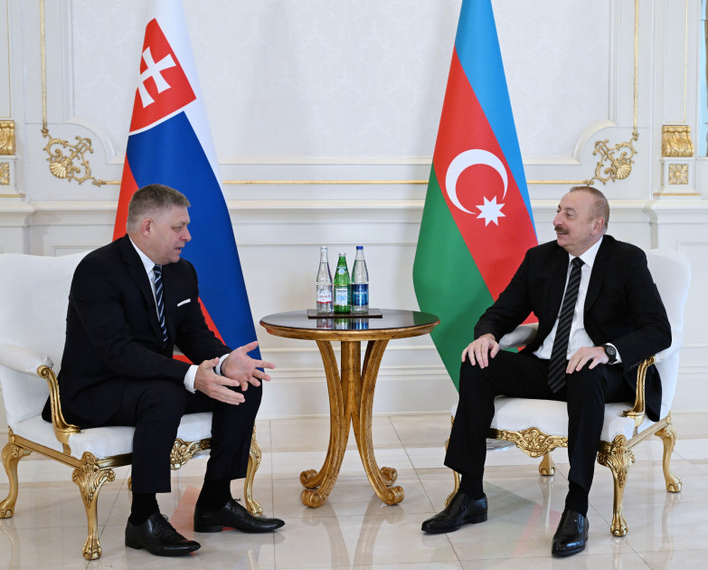 7 мая началась встреча Президента Азербайджанской Республики Ильхама Алиева с находящимся с официальным визитом в нашей стране премьер-министром Словацкой Республики Робертом Фицо один на один.