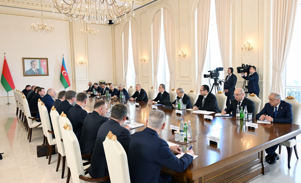 16 мая началась встреча Президента Азербайджанской Республики Ильхама Алиева и Президента Республики Беларусь Александра Лукашенко в расширенном составе.