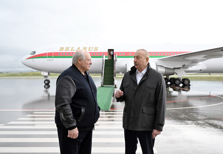 Президента Республики Беларусь Александра Лукашенко встретил Президент Азербайджанской Республики Ильхам Алиев.