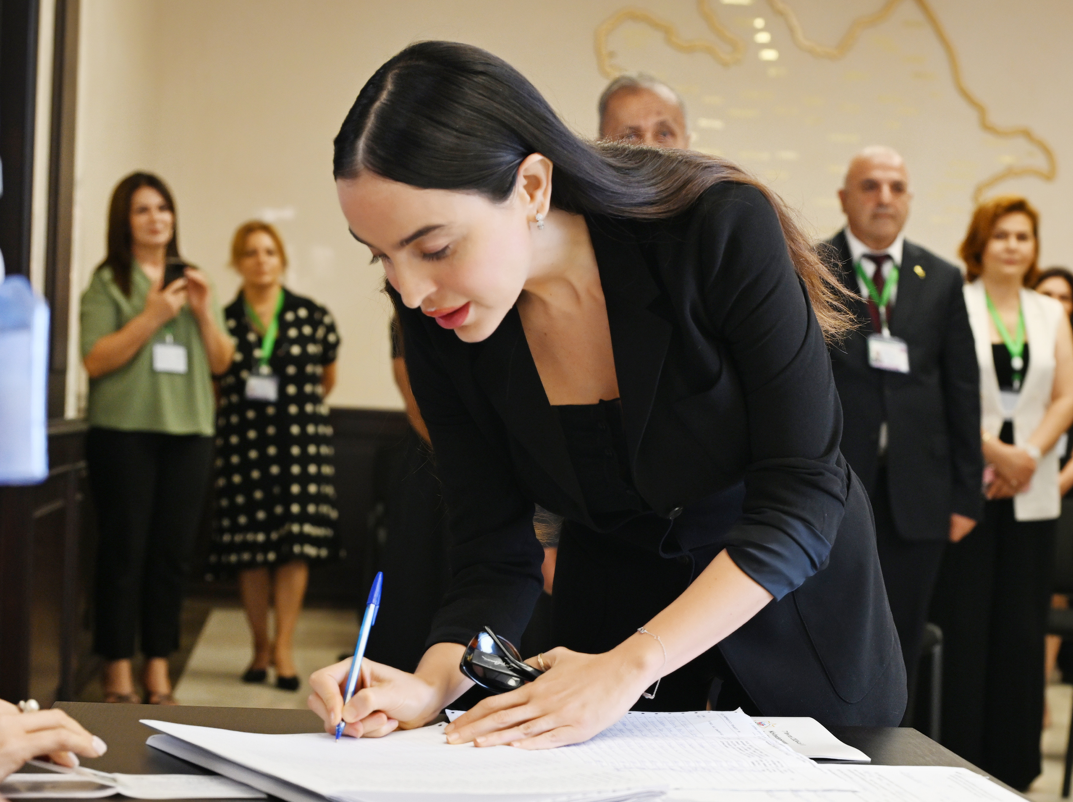 Затем проголосовали первая леди Мехрибан Алиева и Лейла Алиева.